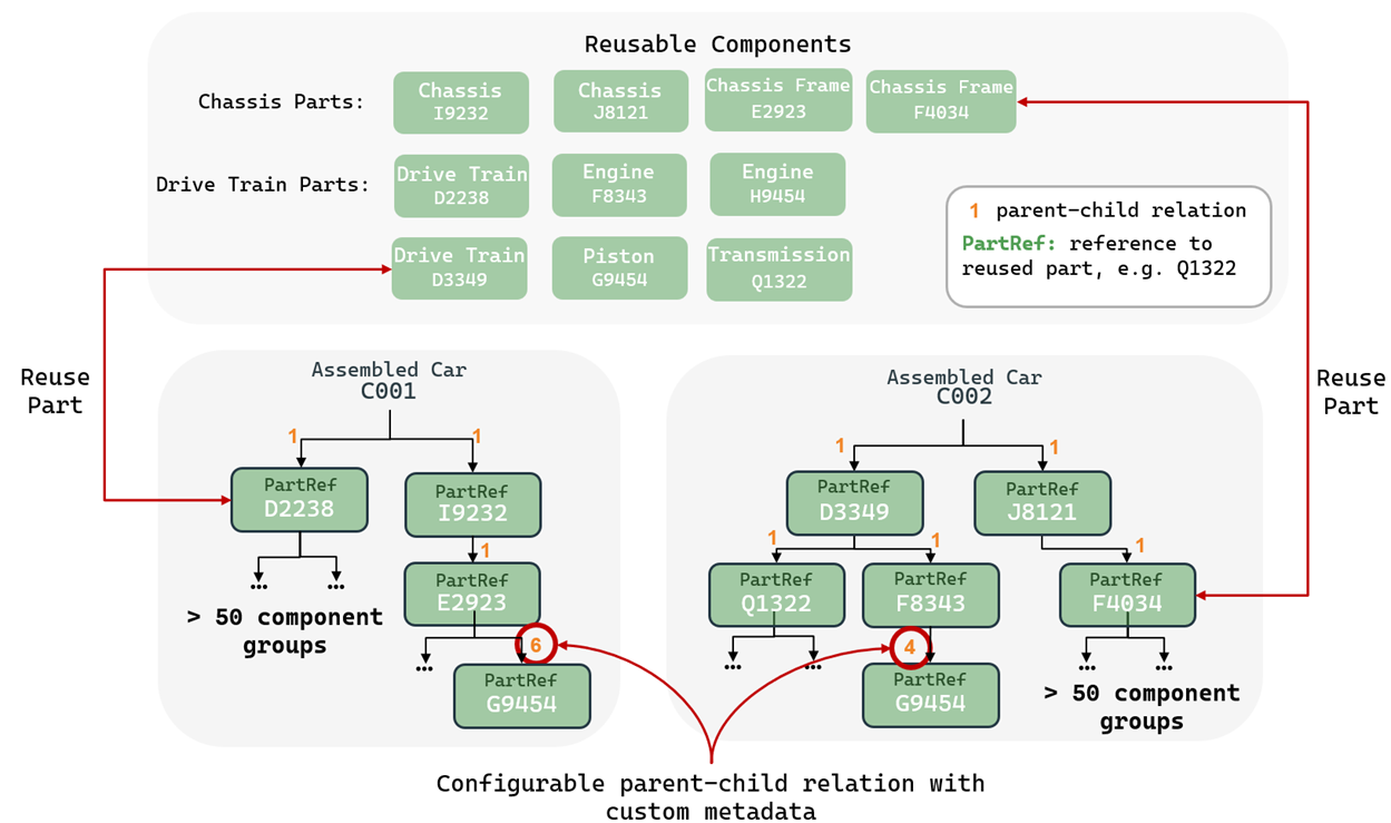 - Better support for complex structures: assemblies can be modeled with richer parent–child relationships (not just a simple tree), making variants and reuse easier.